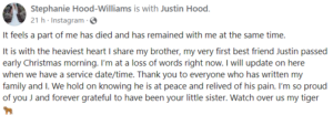 4. How is Stephanie Hood-Williams, Justin Hood’s sister, coping with the loss, and what does her social media announcement reveal?