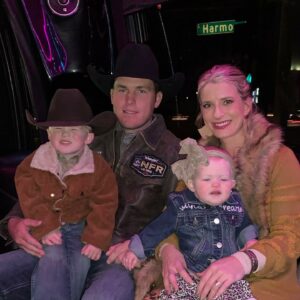Caleb, his wife Brenna, and their two children attended the NFR 2022 event in Las Vegas, Nevada. She thanked the Lord for being trustworthy and for answering their prayers.