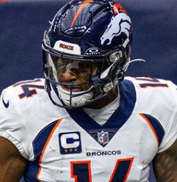 5. What is Courtland Sutton’s jersey number?