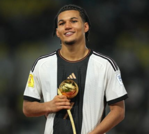 Paris Josua Brunner is a 17-year-old forward from Germany who recently played a pivotal role in securing the championship for Germany in the U-17 Men’s World Cup of 2023. He also earned the prestigious Golden Ball Award, recognizing him as the tournament’s best player.