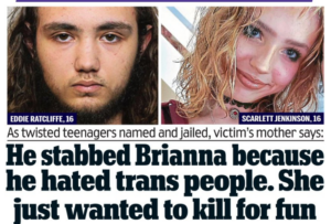 Scarlett Jenkinson and Eddie Ratcliffe, aged 15 at the time, brutally murdered 16-year-old Brianna Ghey with a hunting knife in Linear Park, Culcheth, a village near Warrington, Cheshire. The crime was driven by anti-transgender hatred, influenced by their exposure to torture videos on the dark web.